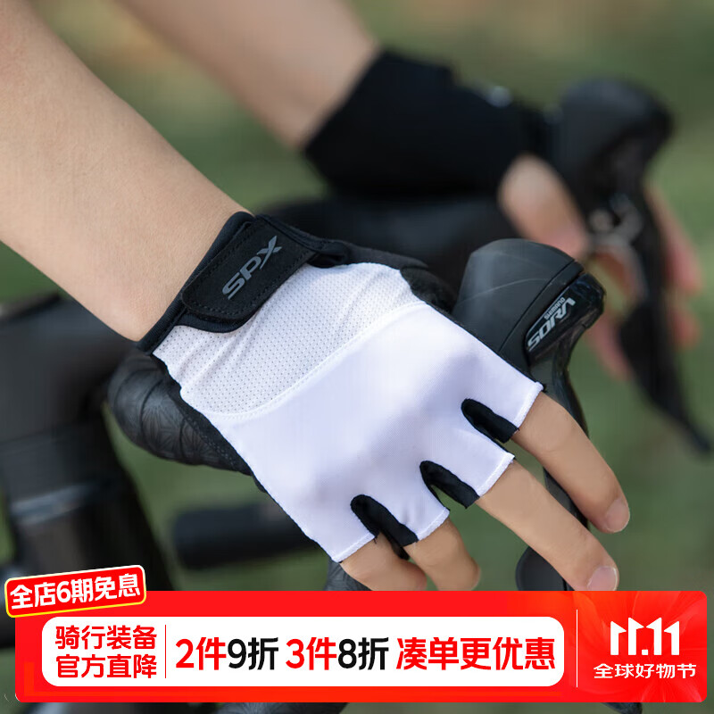 喜德盛公路车山地车骑行眼镜一体成型头盔专业短指手套自行车装备配件 LAB008短指手套 (白色)-M码