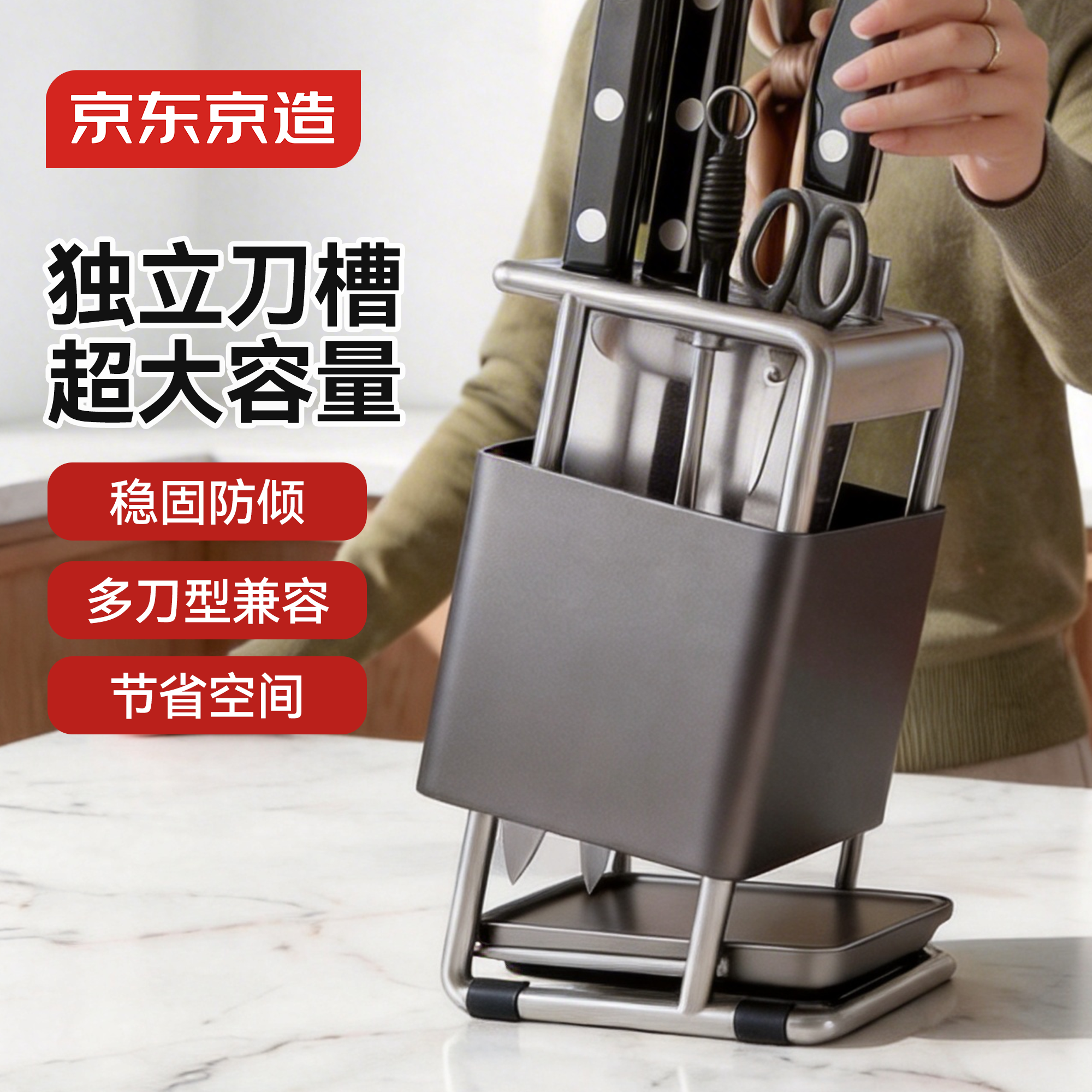 京东京造厨房置物架刀架可沥水斜插式刀具菜刀架台面刀座筷子筒收纳架子