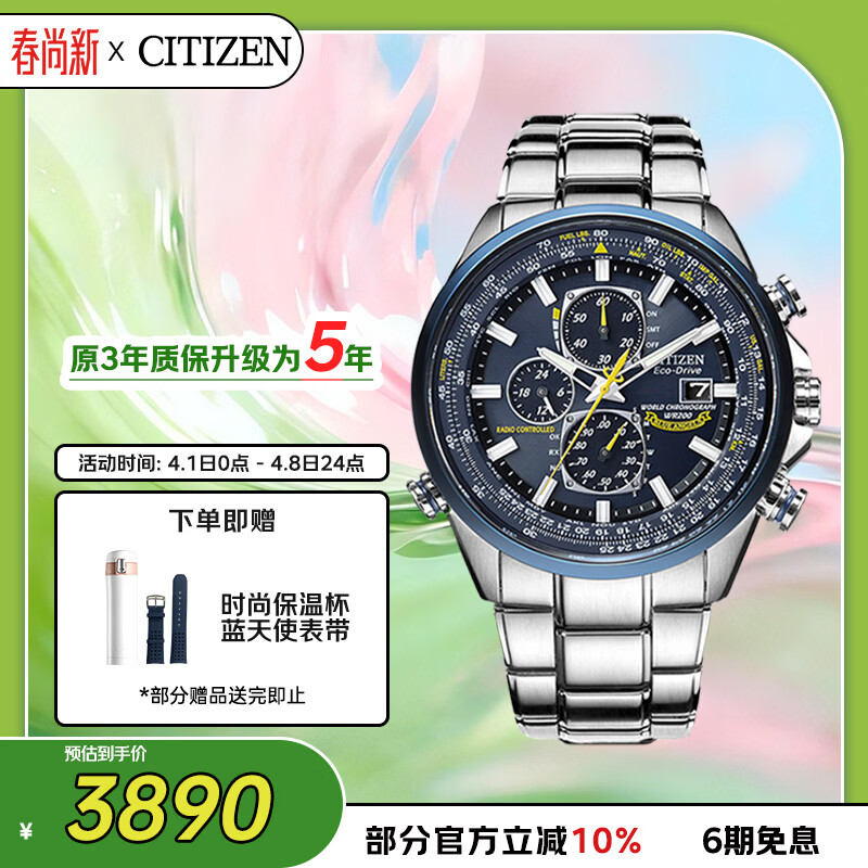 西铁城(CITIZEN)手表男日韩表蓝天使光动能电波钢带商务送男友礼物AT8020-54L