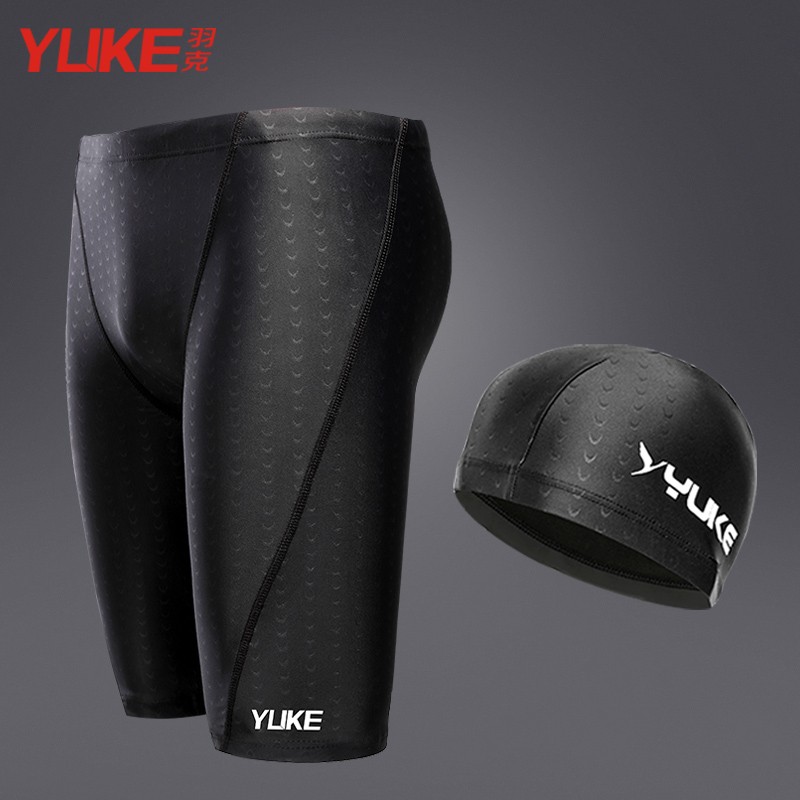 羽克(Yuke)泳裤男五分速干游泳裤男士防水泳衣游泳装备仿鲨鱼皮泳帽泳镜套装 泳裤+泳帽 L码(适合90-100斤)