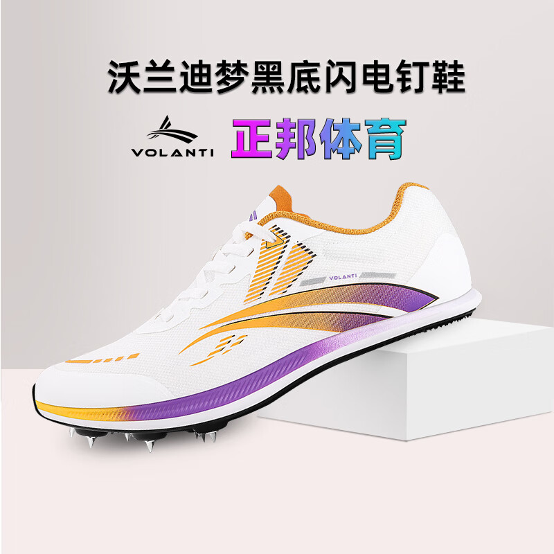 沃兰迪Volanti911黑底闪电钉鞋厚底短跑田径钉子鞋体考跳远比赛 闪电紫VT-911H-107 45