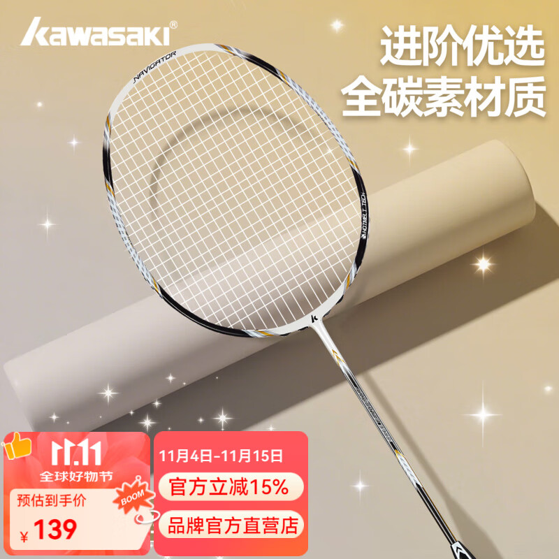 川崎(KAWASAKI) 羽毛球球拍单拍男女专业全碳素超轻进攻型羽毛拍单支羽毛球拍 送3球2手胶-【3300i 单拍】白色