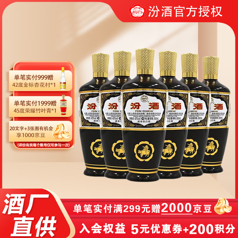 汾酒42度棕玻汾500ml*6瓶 清香型白酒 口粮酒 出口汾酒 42%vol 500mL 6瓶