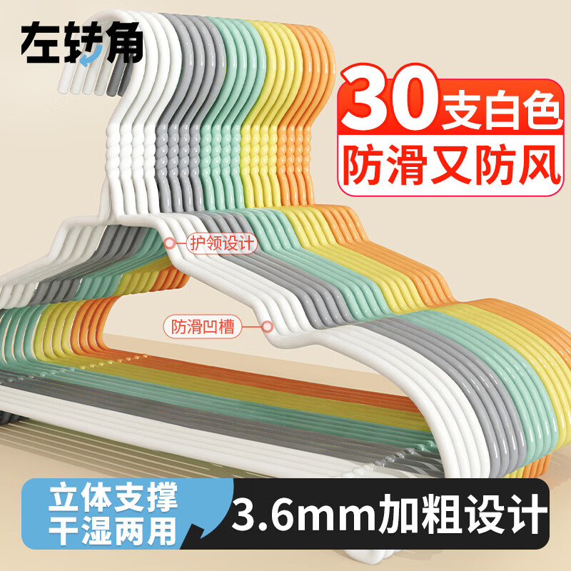 左转角晾衣架挂衣服成人晒衣架加粗儿童衣撑子防滑衣服架无痕衣挂白色
