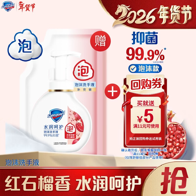 舒肤佳抑菌泡沫洗手液补充装200g袋装红石榴香