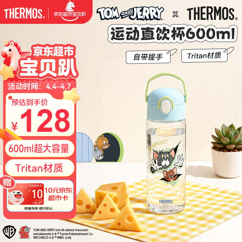 膳魔师(THERMOS)儿童水杯猫和老鼠直饮杯大容量刻度带提手轻量郊游出行学生杯BBSV