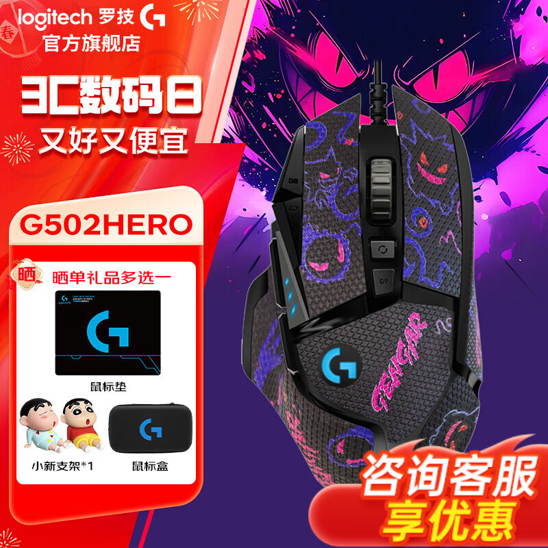 罗技(G) G502 HERO主宰者 有线鼠标 游戏鼠标 吃鸡鼠标 电竞鼠标宏编程可配重HERO引擎 礼盒送男友 G502H(耿鬼防滑贴)