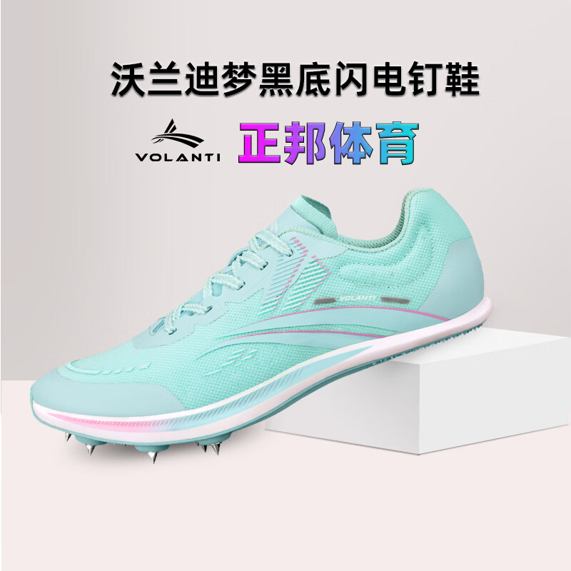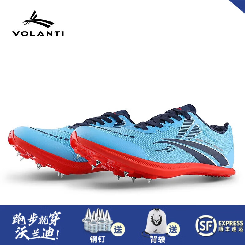 沃兰迪Volanti911黑底闪电钉鞋厚底短跑田径钉子鞋体考跳远比赛 幻影蓝VT-911H-411 38