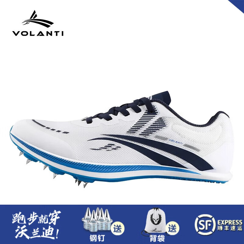 沃兰迪Volanti911黑底闪电钉鞋厚底短跑田径钉子鞋体考跳远比赛 幽灵白VT-911H-104 42