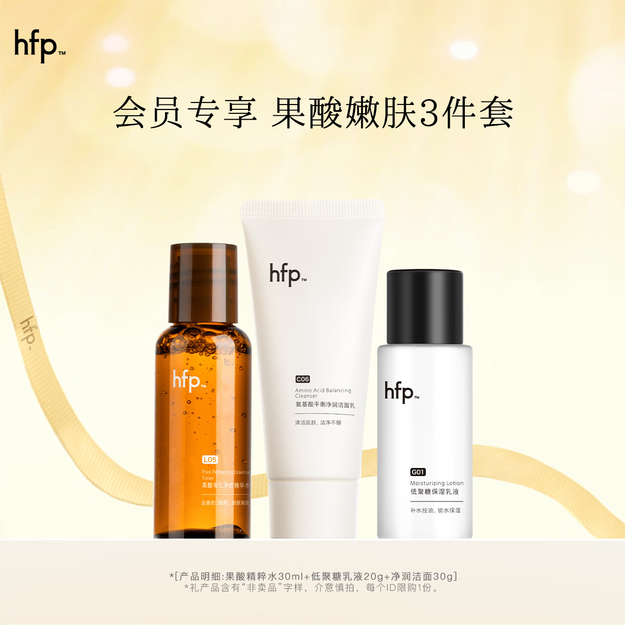 hfp护肤礼包(果酸精粹水30ml+水感保湿乳液20g+氨基酸洁面30g)