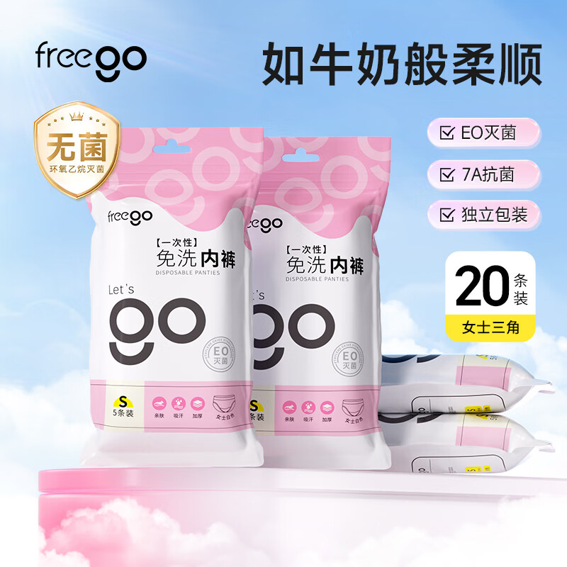 Freego牛奶丝一次性内裤女士灭菌月子透气免洗旅游日抛独立装L码20条