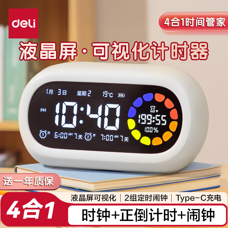 得力(deli)彩屏可视化计时器智能闹钟学生专用起床神器时间管理器定时器4色分区倒计时自律开学文具生日礼物