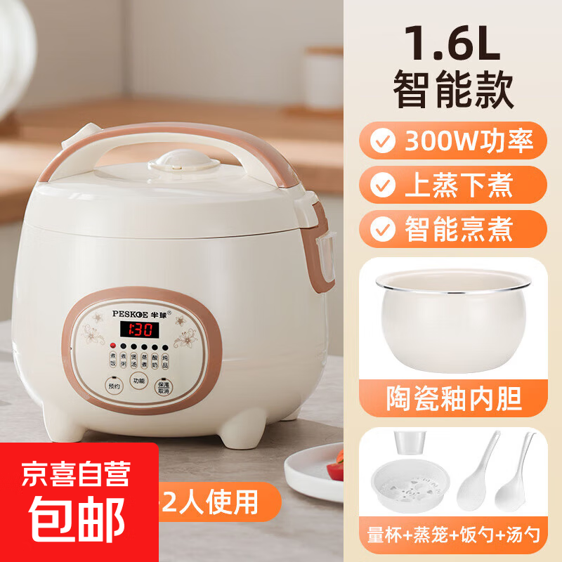 半球(PESKOE)电饭煲电饭锅家用电饭煲1-2人升可蒸煮宿舍可用不粘锅不溢锅1.6-5L小型单人老式家用电 智能款 1.6L 【陶瓷釉球胆】1-2人用