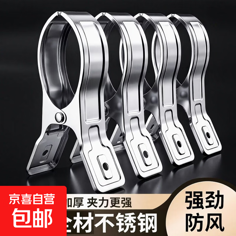 不锈钢防风夹强力防风夹子晾衣夹固定器衣服防风固定扣晒被子 不锈钢大被夹6个 大号闭口