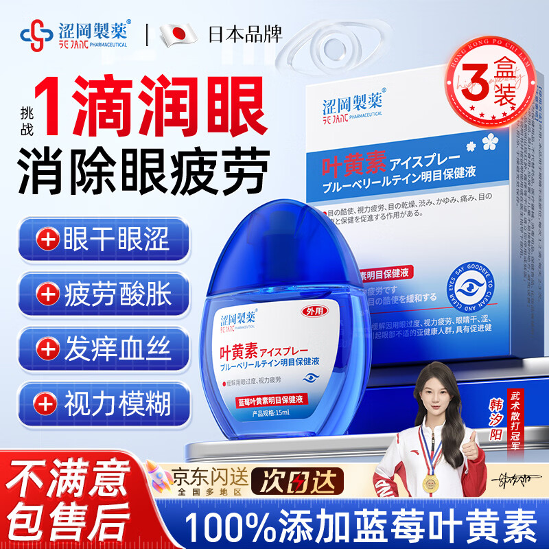 涩冈制薬叶黄素滴眼液眼药水眼疲劳眼干眼涩飞蚊症视力模糊熬夜玩手机3盒