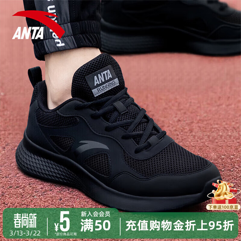 安踏男鞋春季新款运动鞋网面透气黑色跑步鞋轻便休闲鞋软底减震防滑鞋 【店长推荐透气网面】黑 42 (260mm) 8.5