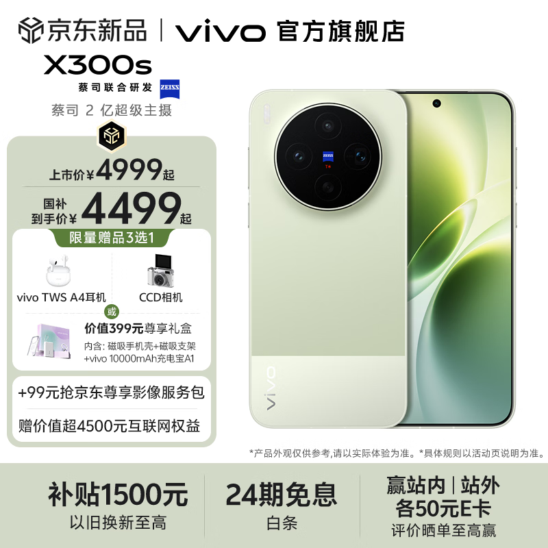 vivo X300s 蔡司2亿超级主摄 蔡司APO超级长焦 蓝图影像芯片V3+ 7100mAh蓝海电池 新品拍照手机 胶片绿 12GB+512GB 赠新品尊享礼盒