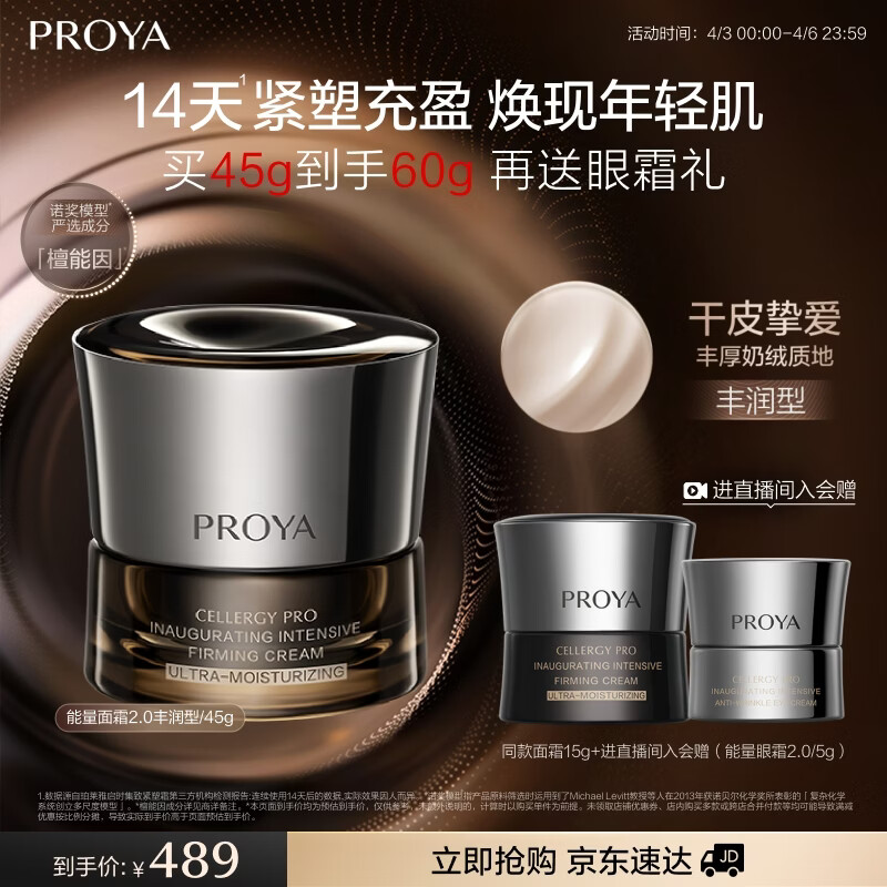 珀莱雅(PROYA)能量面霜抗皱紧致 滋养修护乳液檀能因45g生日礼物女(油霜版)