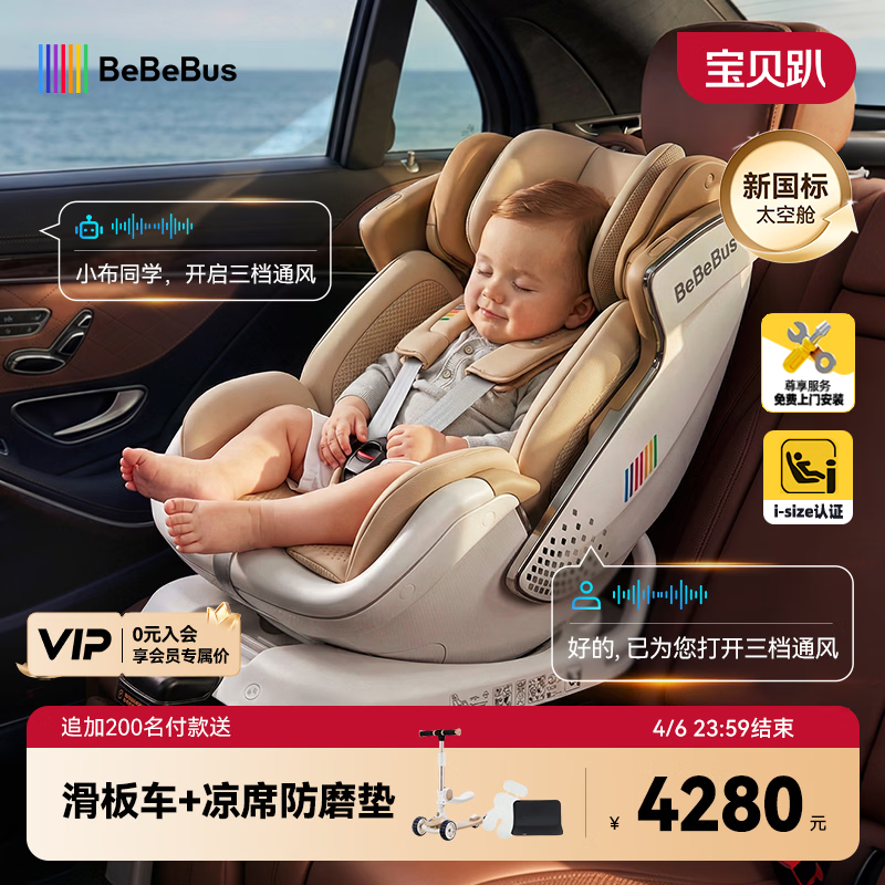 bebebus儿童安全座椅0-7岁太空舱智能语音婴儿安全座椅