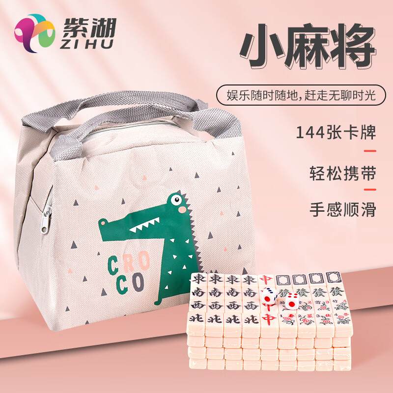 紫湖24mm麻将牌便携迷你麻将牌旅行麻将套装宿舍手搓麻将收纳袋带牌尺