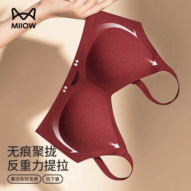 猫人(MiiOW)本命年马年女内衣女士新娘结婚红色文胸女生无钢圈聚拢上托胸罩女