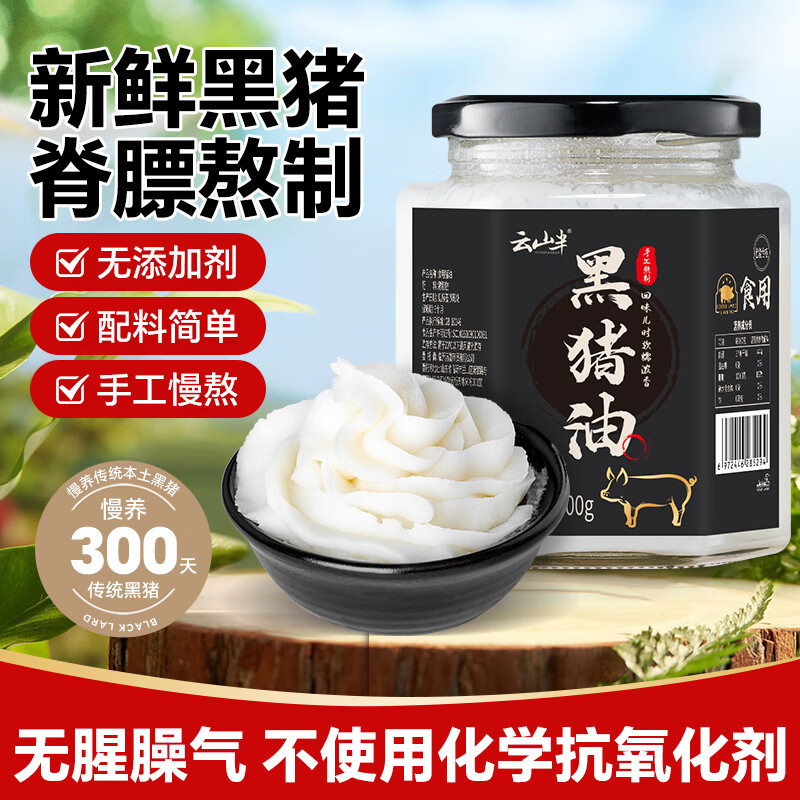 云山半黑猪油300g 0添加剂无抗黑猪肉脊膘肉熬制 拌饭食用猪油火锅底料