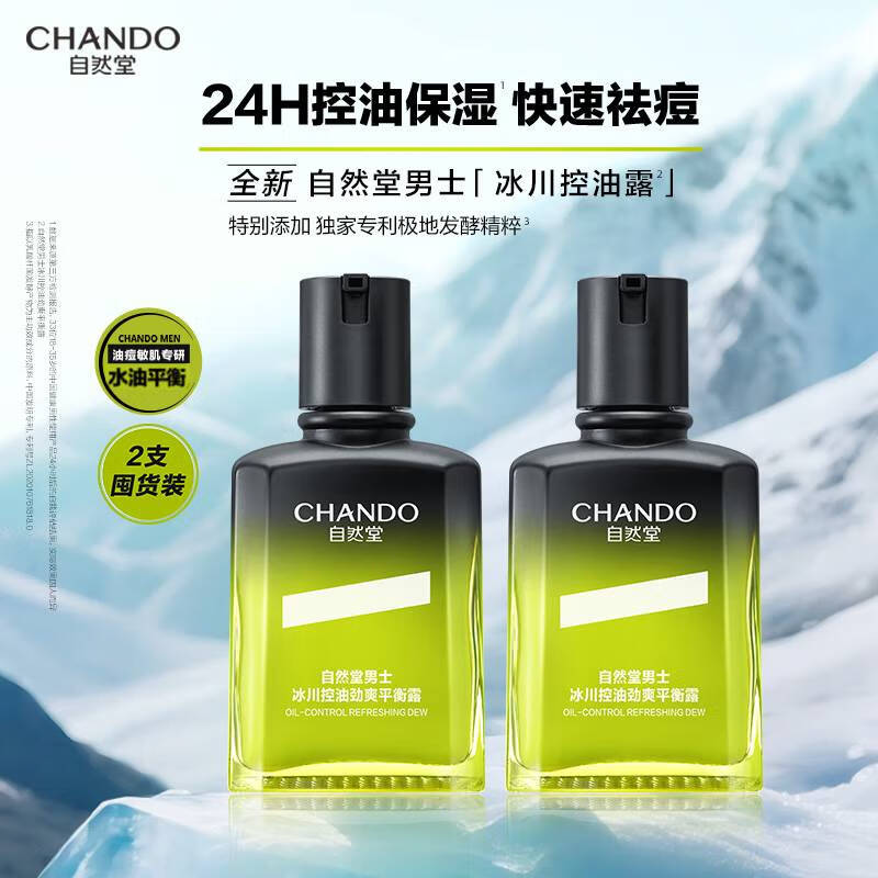 自然堂(CHANDO)男士冰川控油祛痘套装洗面奶水乳清爽保湿护肤品情人节礼物男朋友 男士控油露双支