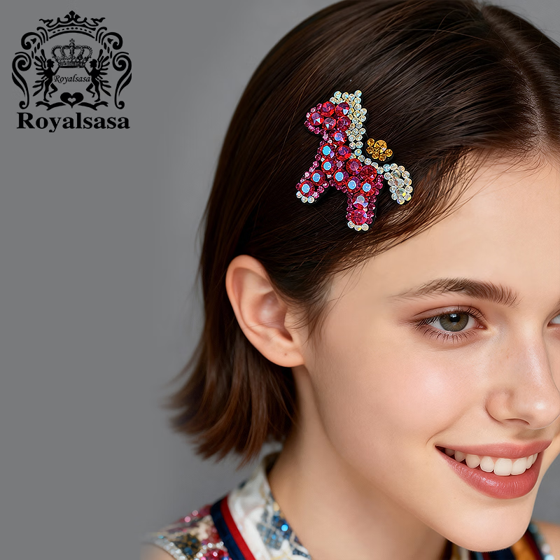 Royal sasa新年礼物拜年侧边夹马年生肖仿水晶发夹春节喜庆碎发刘海夹头饰女