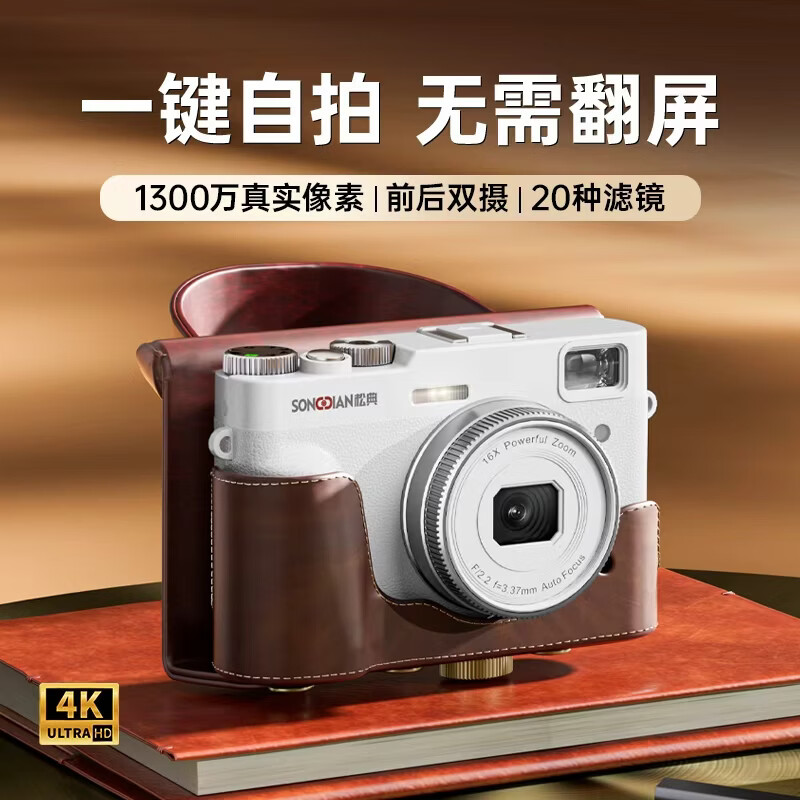 松典(SONGDIAN)数码相机学生高清双摄 高中生vlog微单随身便携平替ccd照相机DC212 白色 128G内存+皮包