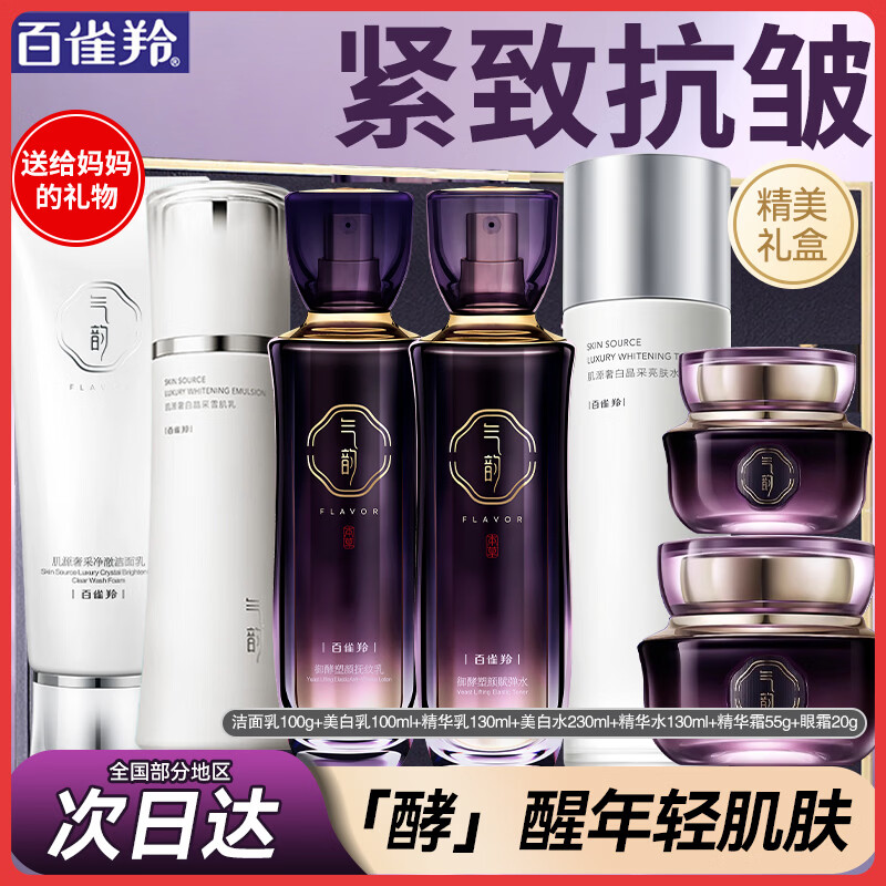 百雀羚(PECHOIN)套装气韵御酵塑颜御龄臻颜礼盒水乳面霜精华液紧致抗皱化妆护肤品 洁面100g+水共360ml+乳共230ml+霜55g+眼霜20g