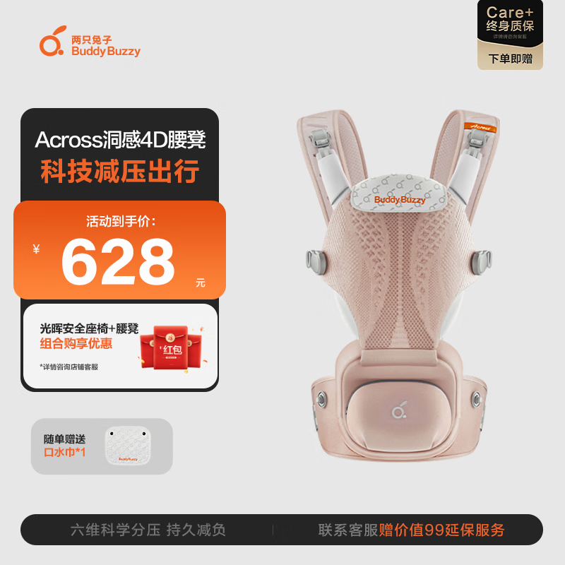 两只兔子腰凳婴儿背带Across洞感4D科技减压护腰单人穿脱抱娃神器 薄雾粉