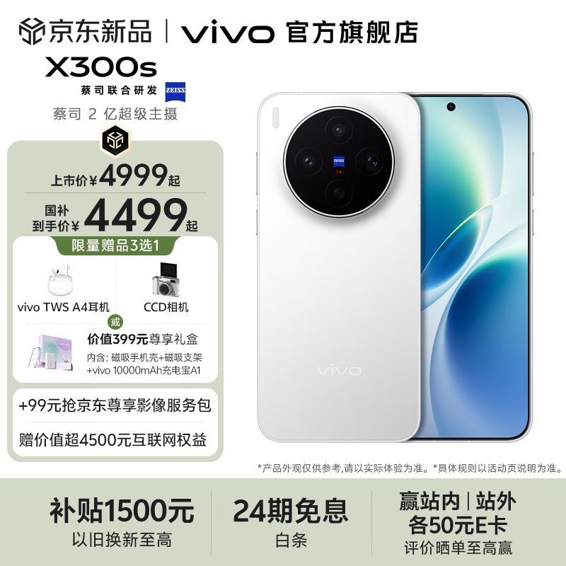 vivo X300s 蔡司2亿超级主摄 蔡司APO超级长焦 蓝图影像芯片V3+ 7100mAh蓝海电池 新品拍照手机 银白 12GB+512GB 赠新品尊享礼盒