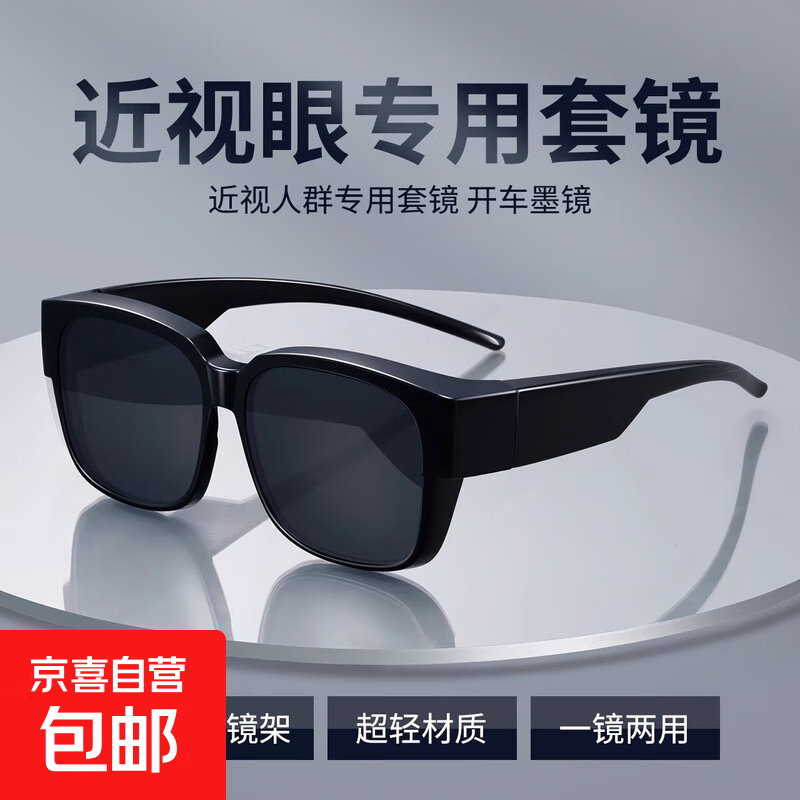 近视GM套镜女开车专用墨镜可套近视套镜新款防紫外线防晒太阳眼镜 黑框套镜