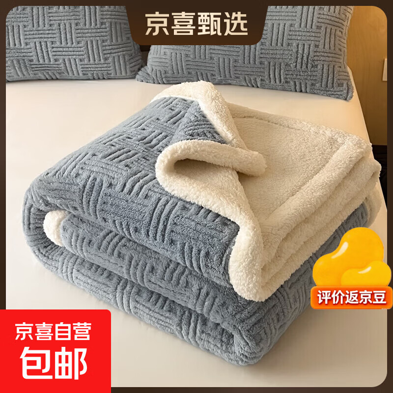 加厚羊羔绒毛毯盖毯牛奶绒冬季办公室午睡珊瑚绒披肩沙发毯小被子 冰川灰 100x150cm午睡毯/披肩毯