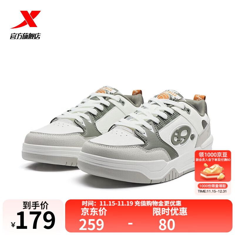 特步门店同款新途|板鞋男鞋2025夏季复古低帮休闲运动鞋975319310029 帆白/云杉绿/鸽子灰 44