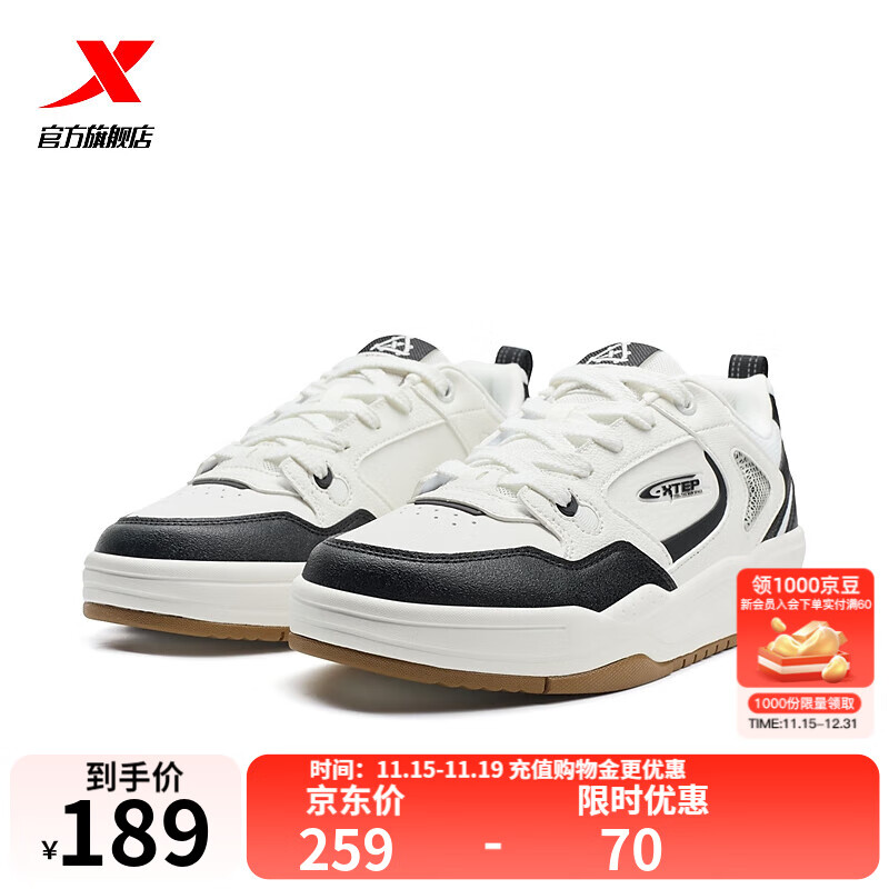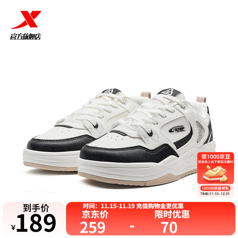 特步门店同款云帆休闲男鞋2025夏季新品复古休闲运动板鞋975319310017 帆白/黑 45
