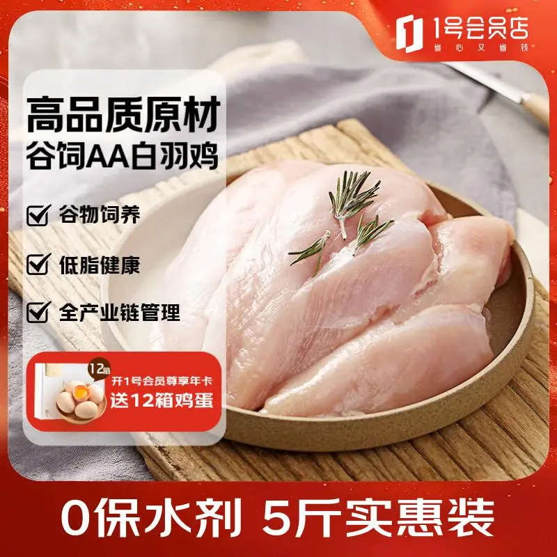 1号会员店(One's Member) 单冻鸡大胸 净重5斤 出口级食材 鸡肉鸡胸肉健身鸡胸肉鸡里脊