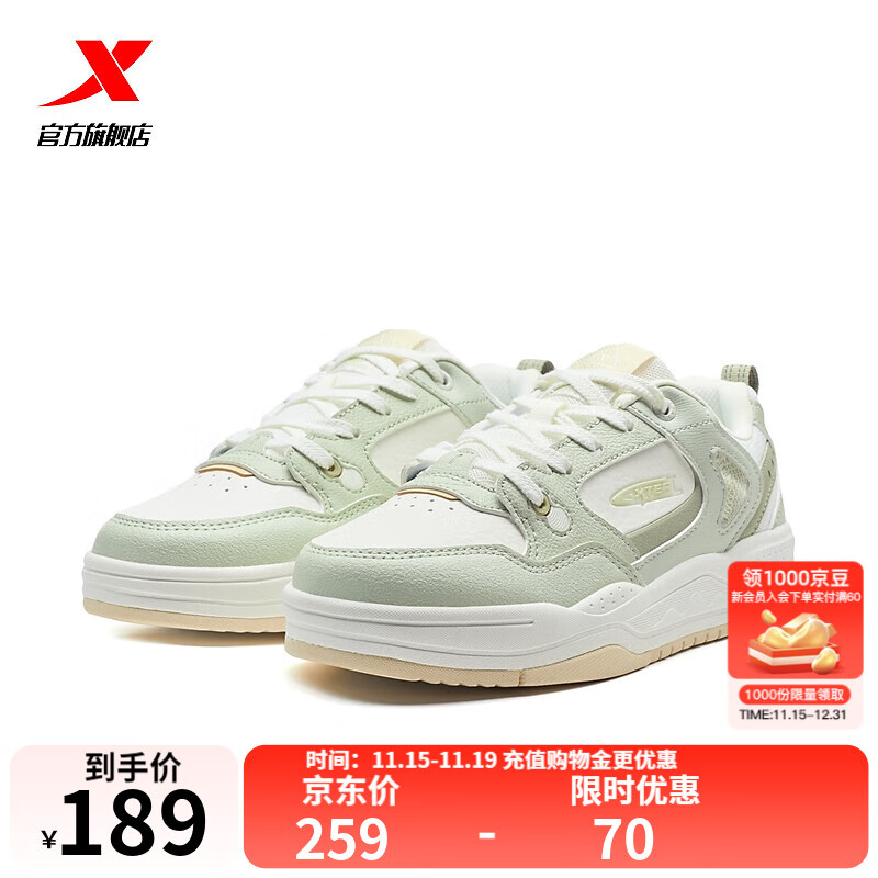特步【摩登天空】云帆|板鞋2025夏季休闲鞋女运动鞋975318310060 凝脂绿/帆白/仓灰色 40