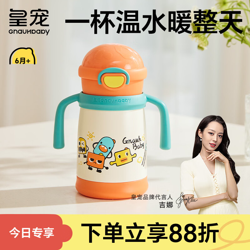 皇宠保温杯儿童水杯宝宝学饮杯吸管杯幼儿园外出不锈钢水壶 橙350ml