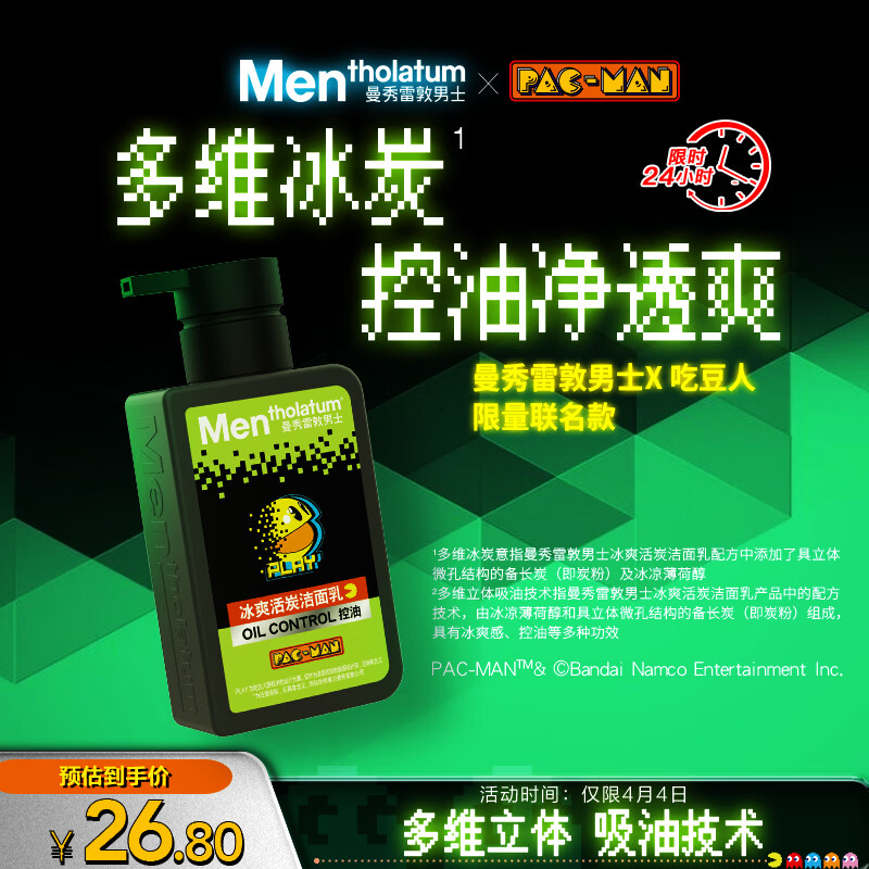 曼秀雷敦男士专用冰爽活炭控油洗面奶150ml深层清洁去黑头-吃豆人包装