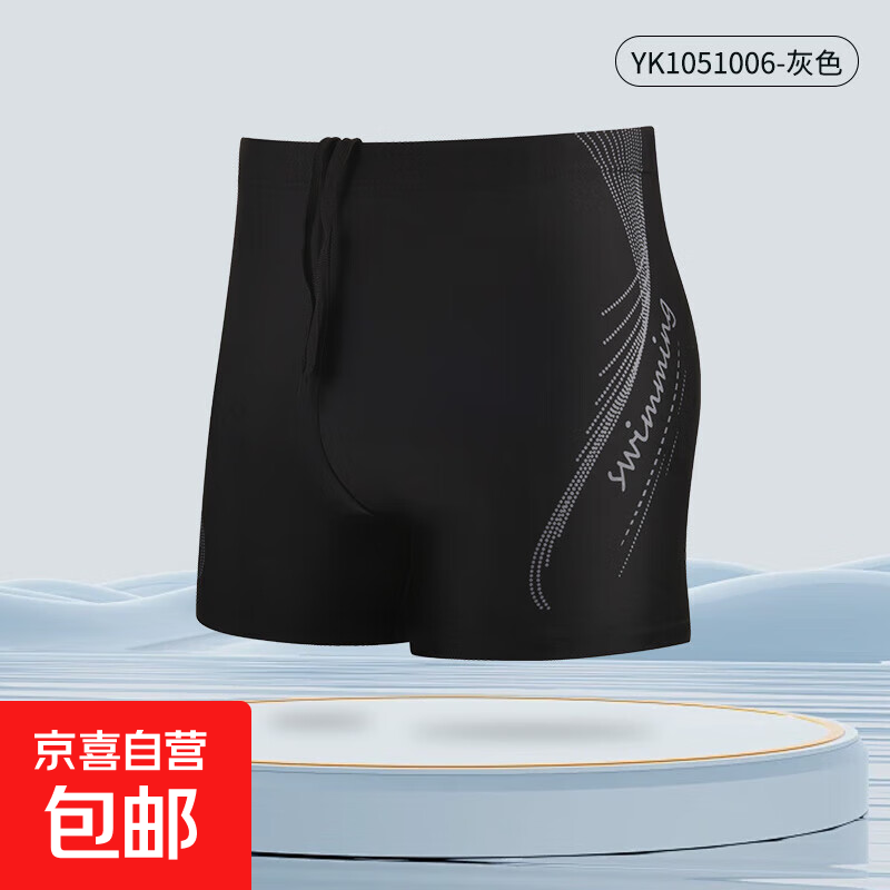 泳裤男平角速干防尴尬大码男士泳衣宽松专业游泳裤男款游泳装备 灰色(水印) L 【建议100-130斤】