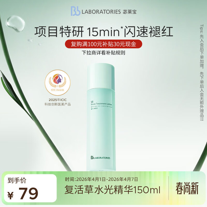 Bb LABORATORIES张馨予代言苾莱宝复活草水光精华150ml有效期27年2月