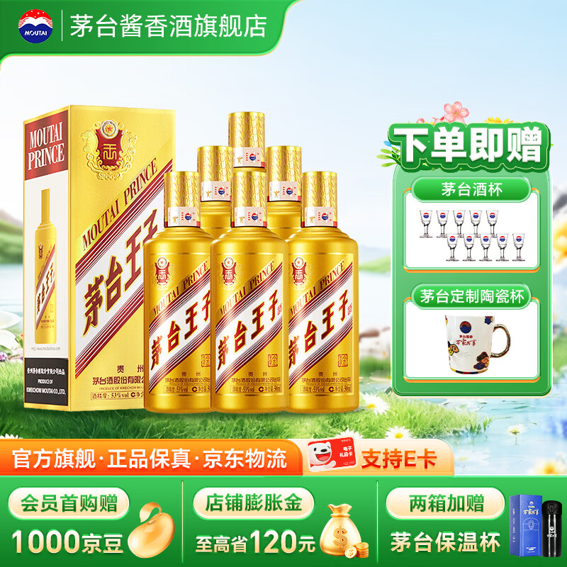 茅台(MOUTAI)【官方旗舰店】茅台王子酒 金王子 53度 酱香型白酒 迎宾喜酒 53度 500mL 6瓶 整箱装