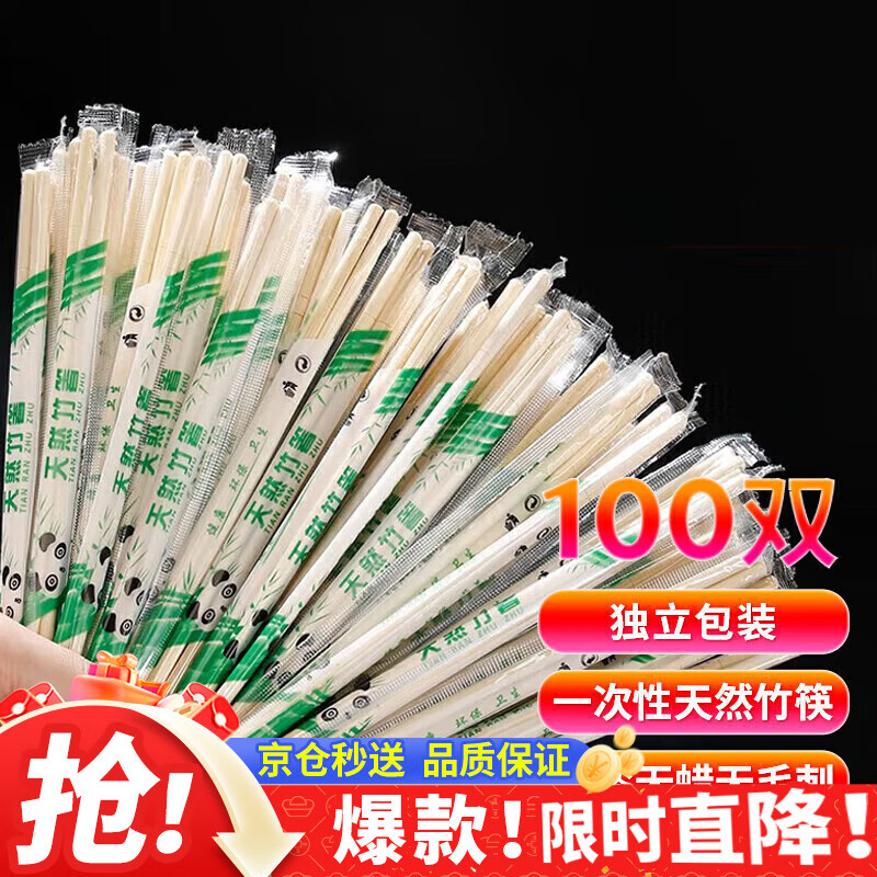 优奥 一次性筷子100双独立装卫生竹筷方便筷打包野餐露营免洗餐具用品
