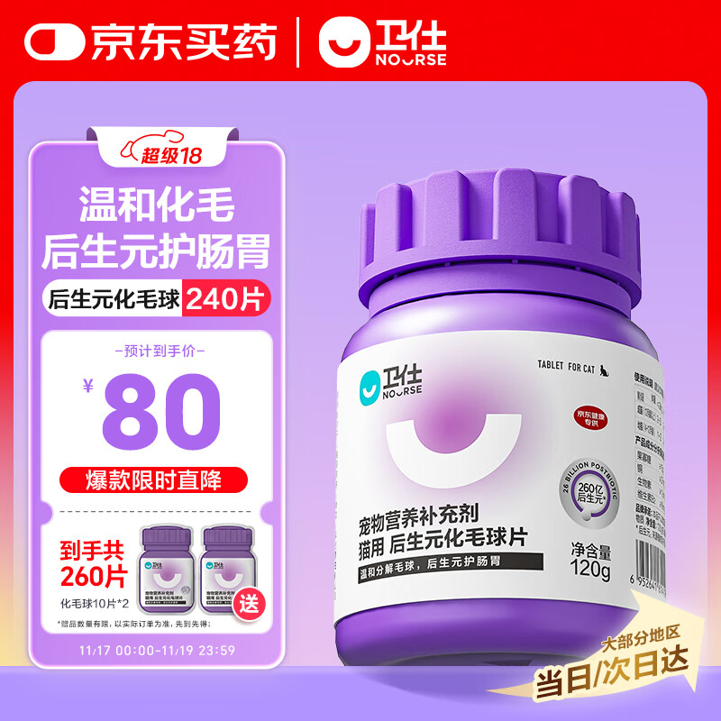 卫仕化毛球片240片 定制款 植物纤维草本猫草片 成猫温和化毛膏