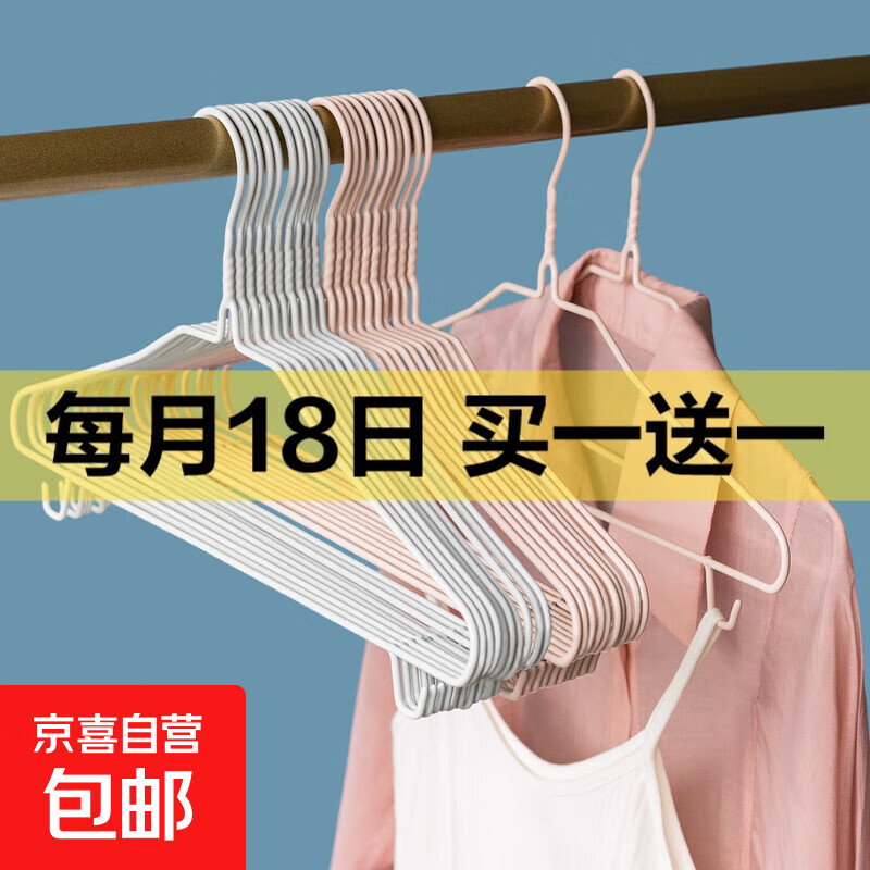 京东物流 成人加粗无痕带钩晾衣架家用多功能衣挂宿舍用学生收纳 40.5cm多功能晾晒衣架 咖粉色 10个