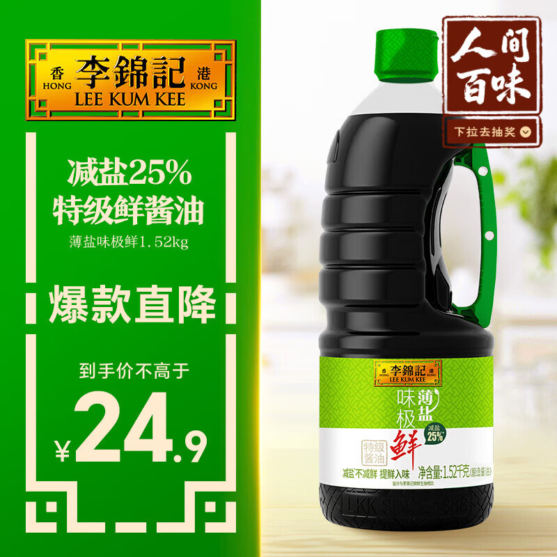 李锦记 薄盐系列 薄盐味极鲜1.52kg【减盐 特级】提鲜入味 高鲜酱油