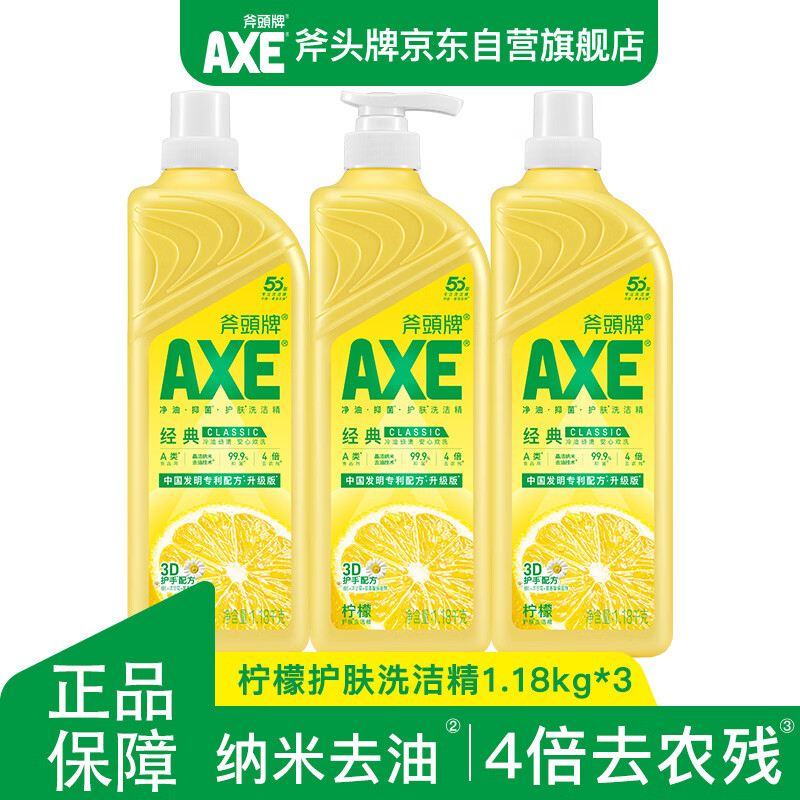 AXE斧头牌柠檬护肤洗洁精1.18kg*3瓶7.08斤家庭装 可洗果蔬不伤手