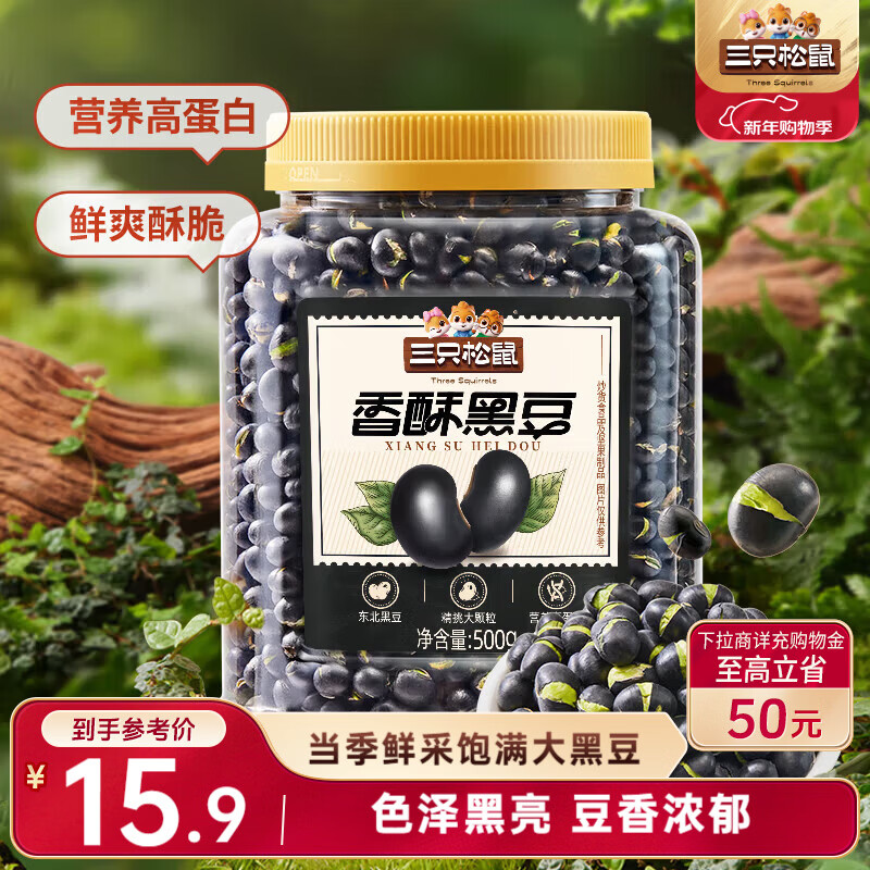 三只松鼠盐炒黑豆500g/罐 熟黑豆香酥坚果炒货即食高蛋白休闲零食五谷杂粮