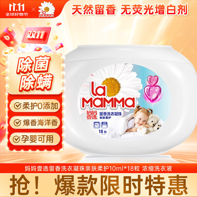 妈妈壹选留香洗衣凝珠亲肤柔护10ml*18粒 浓缩洗衣液 除菌除螨低泡易漂